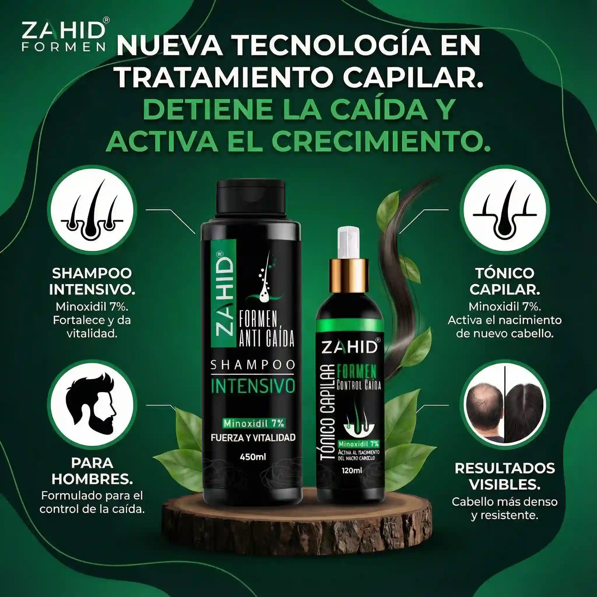 Desde que uso el combo con minoxidil noté menos caída y nuevos cabellos creciendo. ¡Funciona excelente! 💚